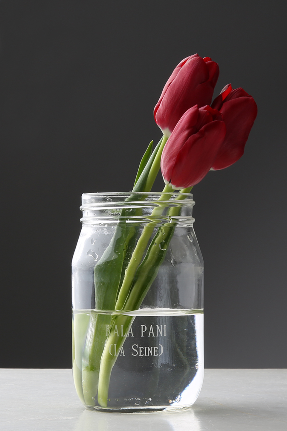 Through the mason jars, we are confronted with deliberately depersonalized objects, abstractions of archival photos or ship names written on our ancestors’ emigration passes. Mason jars are common household objects, now commodified into “retro cool” (found in the trendy bars of New York and Toronto). Our communities of origin may not collectively be free of back-breaking labor, but here in the diaspora we can knowingly access these props of faux downward mobility. But we risk forgetting the past. This is why, when Gosine claims these functional jars (similar to the one his Ahja kept, filled with Ganges holy water), he is compelled to create a re-labelled identity, assigned meaning by that which is most meaningful to him. He is best by the water, symbolized by the tulips in La Seine. It is an identity that flows from the past, but is also fluid. Although crossing the kala pani has been interpreted as a traumatic rupture, in Gosine’s art, we see the subtleties that extends the personal, interwoven with a transoceanic past. In other words, his work becomes a confrontation—and meditation—with how we can make memory meaningful to each of us.
